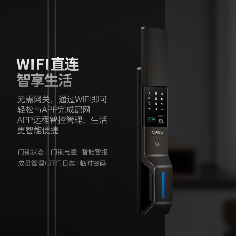 內置WiFi芯片,數據加密傳輸,安全可靠。WiFi 信號穩定,通訊距離遠,穿墻能力強,無(wú)需忍受網(wǎng)關(guān)的諸多缺點(diǎn)。 羅曼斯智能鎖WiFi直連版,支持查看門(mén)鎖常態(tài)動(dòng)態(tài),每次一開(kāi)門(mén)都記錄,直接通過(guò) WIFI傳送至手機APP 終端。并 人性化設計一次性臨時(shí)密碼,可以通過(guò)微信或者短信方式發(fā)送到客人接收端,而且在規定時(shí)間內使用一次立即失效,既保證了家里安全,又避免了客人朋友在外面就等的不方便。