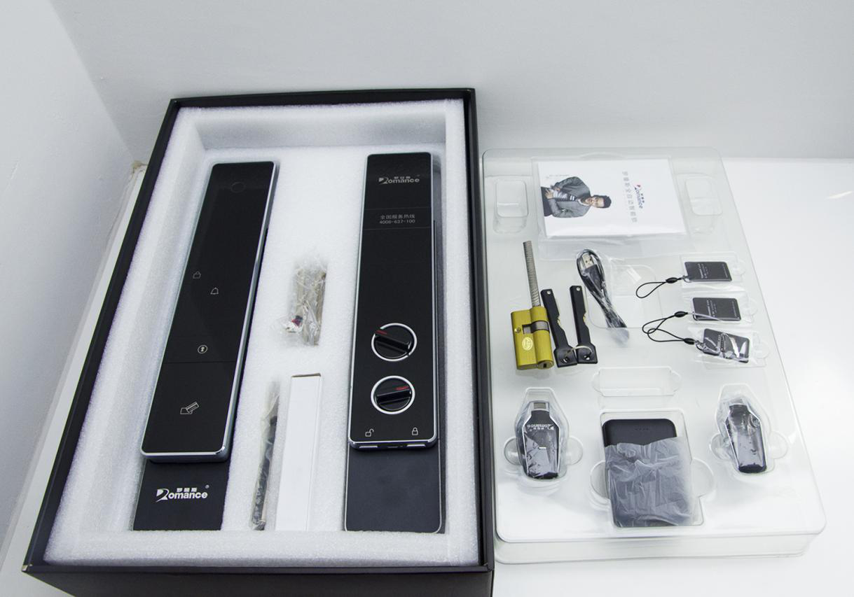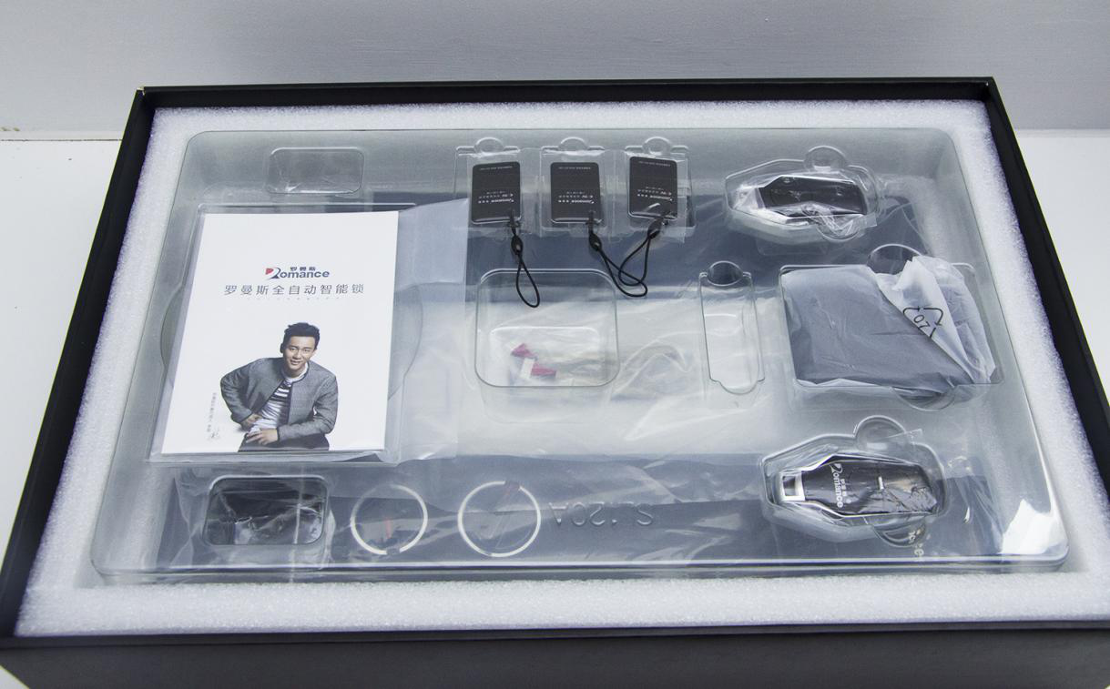 下面我們來(lái)看一下A8的全體成員:前后鎖板各一個(gè)、鎖芯、前后鎖板連接線(xiàn)1條、2把鑰匙、2個(gè)遙控器、3張IC卡、充電寶1個(gè)、充電線(xiàn)1條、螺絲配件包1份、三包服務(wù)1份等。零件基本做工細致,用手摸上去,觸感光滑,很有質(zhì)感。